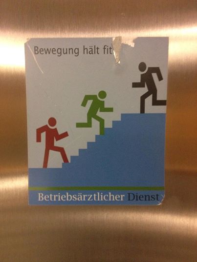 A lépcsőzéstől jó kondid lesz! by Lengyel Kristóf Posted on 2014-07-112014-09-07 Korábbi cikkek Ez is egyfajta hatékonyság: “A lépcsőzéstől jó kondid lesz” (szabad fordítás). Mindez a céges üzemorvos ajánlásával az irodaépület lift hívógombja mellett elhelyezve Megosztás: Click to share on X(Új ablakban nyílik meg) X Facebookon való megosztáshoz kattintás ide.(Új ablakban nyílik meg) Facebook Tetszik Betöltés... Kapcsolódó bejegyzések