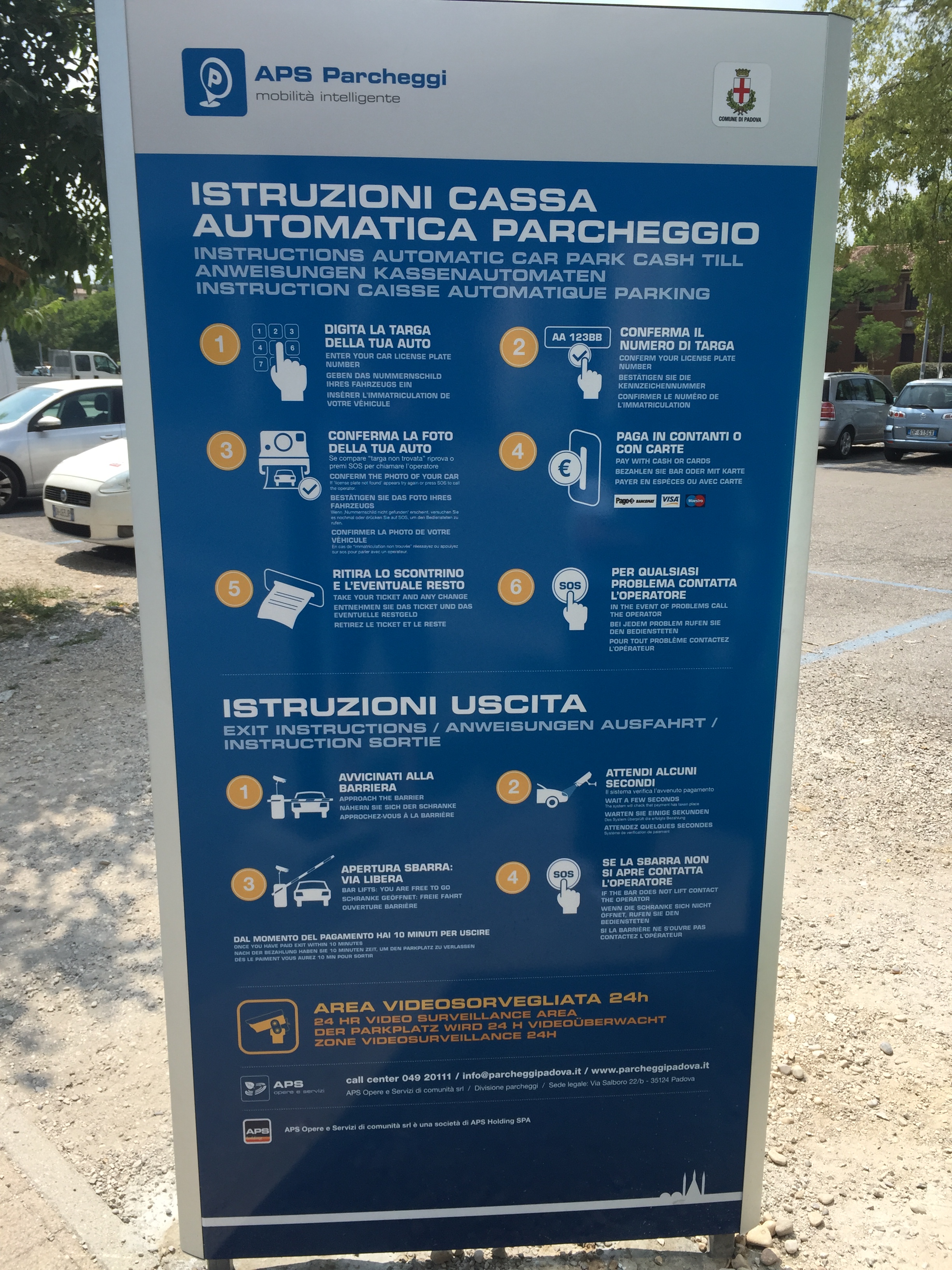 A legtöbb parkolóba ha behajtunk, az automata kiadja a parkolójegyet, leparkolunk, eltesszük a parkolójegyet, fizetünk a parkolás végén és kihajtunk. Ez így elég egyszerű és nemzetközileg is megszokott. Több budapesti parkolóban már évek óta működnek rendszám felismerő rendszerek, így a papír jegyre csak a fizetéskor van szükség. Ennél lépett eggyel tovább a Padovában látott rendszer.